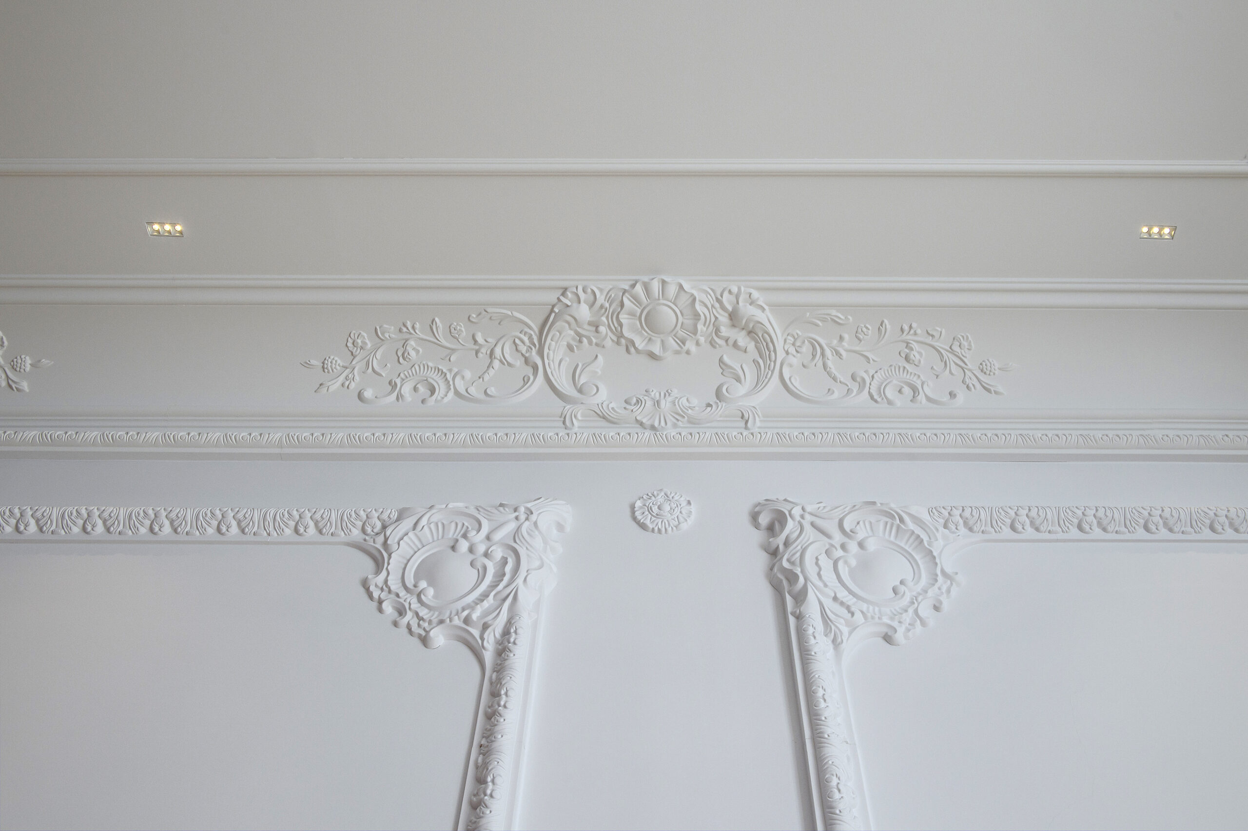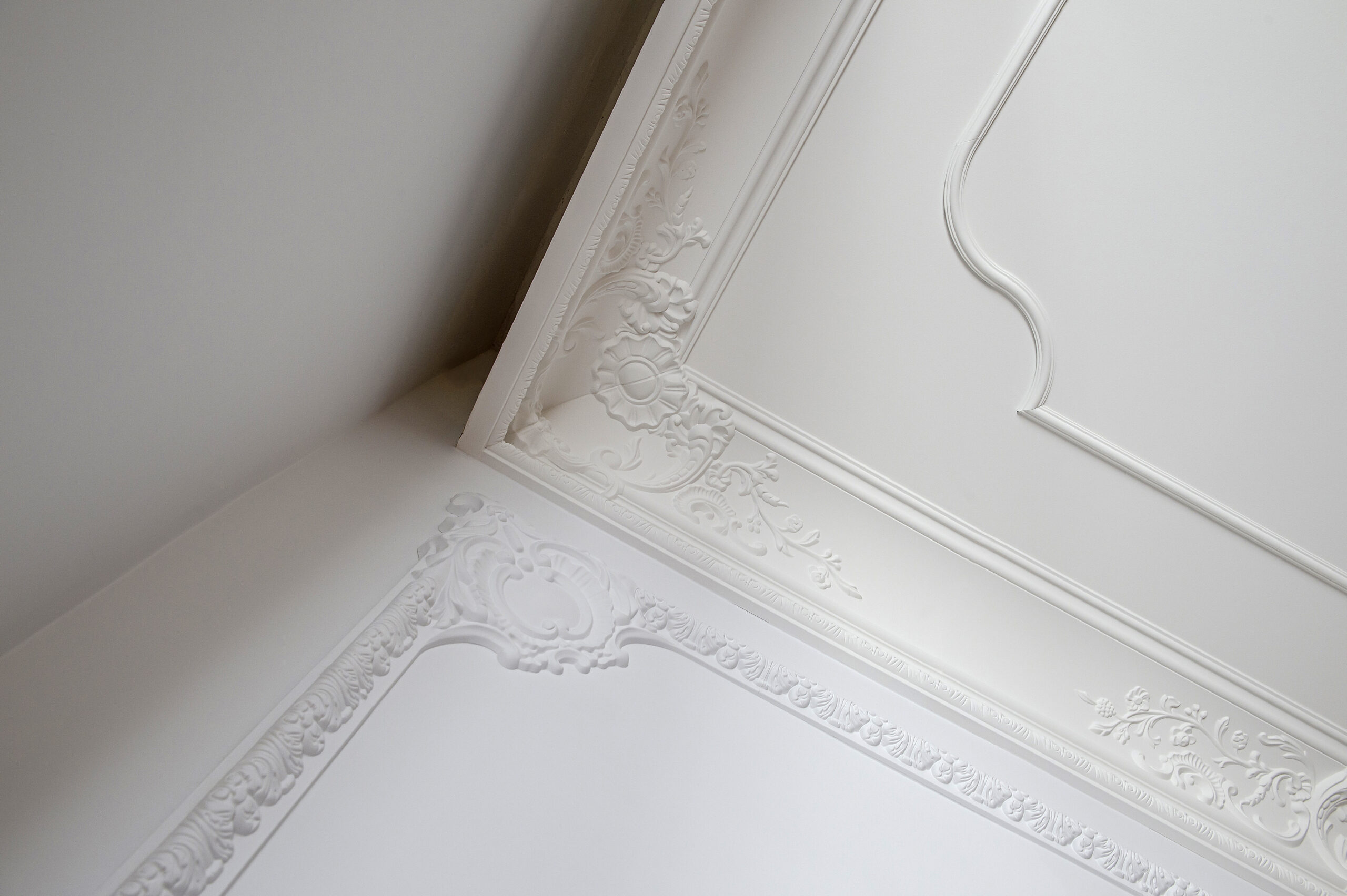 LA SURFACE DE LA RENOVATION EST MODESTE, MAIS CONCENTRE UNE PALETTE D’EMBELLISSEMENT DU SOL EN POINTE DE HONGRIE AU STAFF DES PLAFONDS.