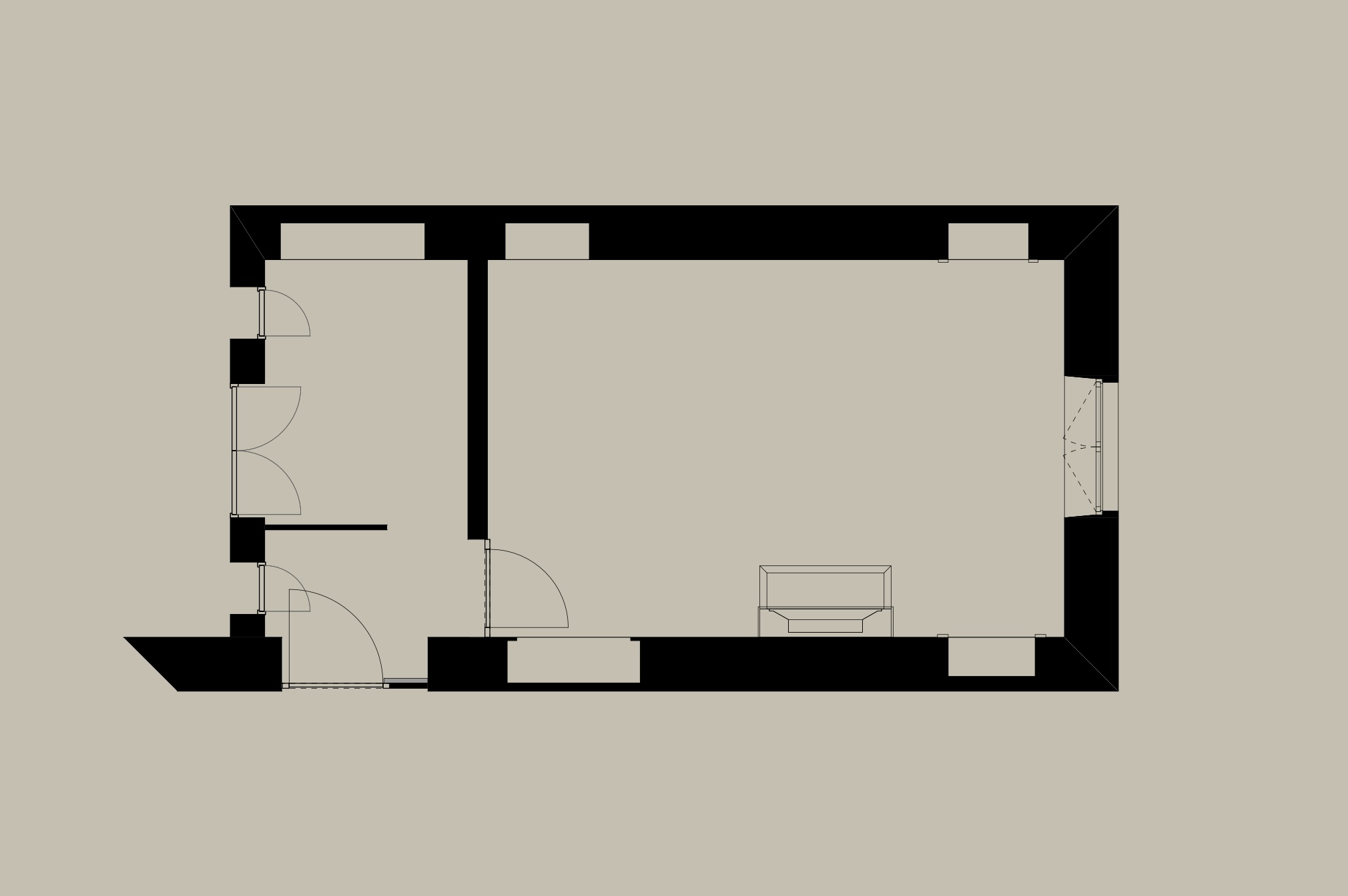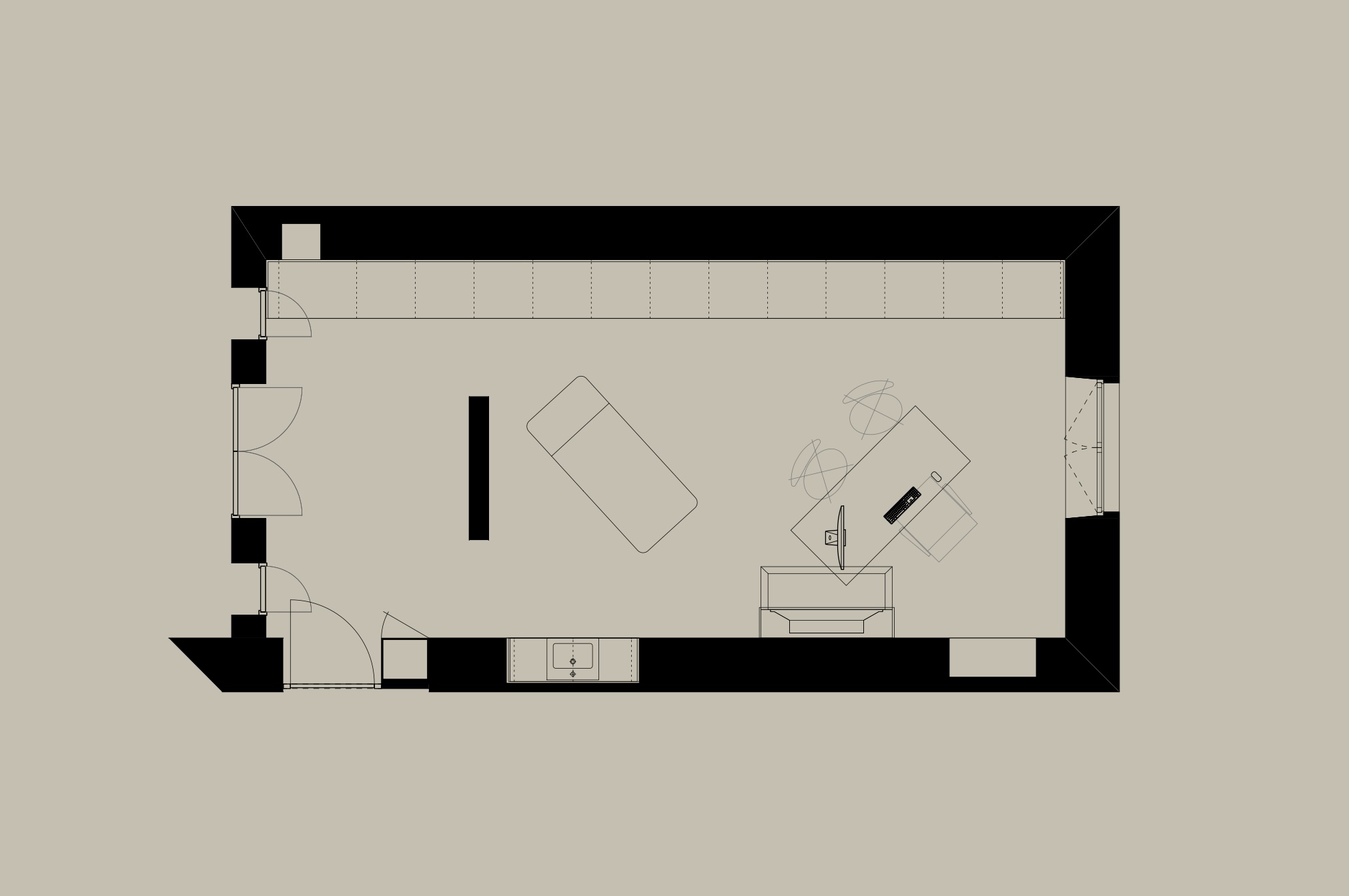 L’existant est une pièce de 30m2 environ ayant subi des rénovations de qualité moyenne. Les murs sont en toile de verre de couleur vive, le mobilier triste, Les goulottes et les installations électriques mal ajustés. Le tout disposé sans cohérence d’ensemble. Comme souvent, nous sommes repartis d’une feuille blanche.