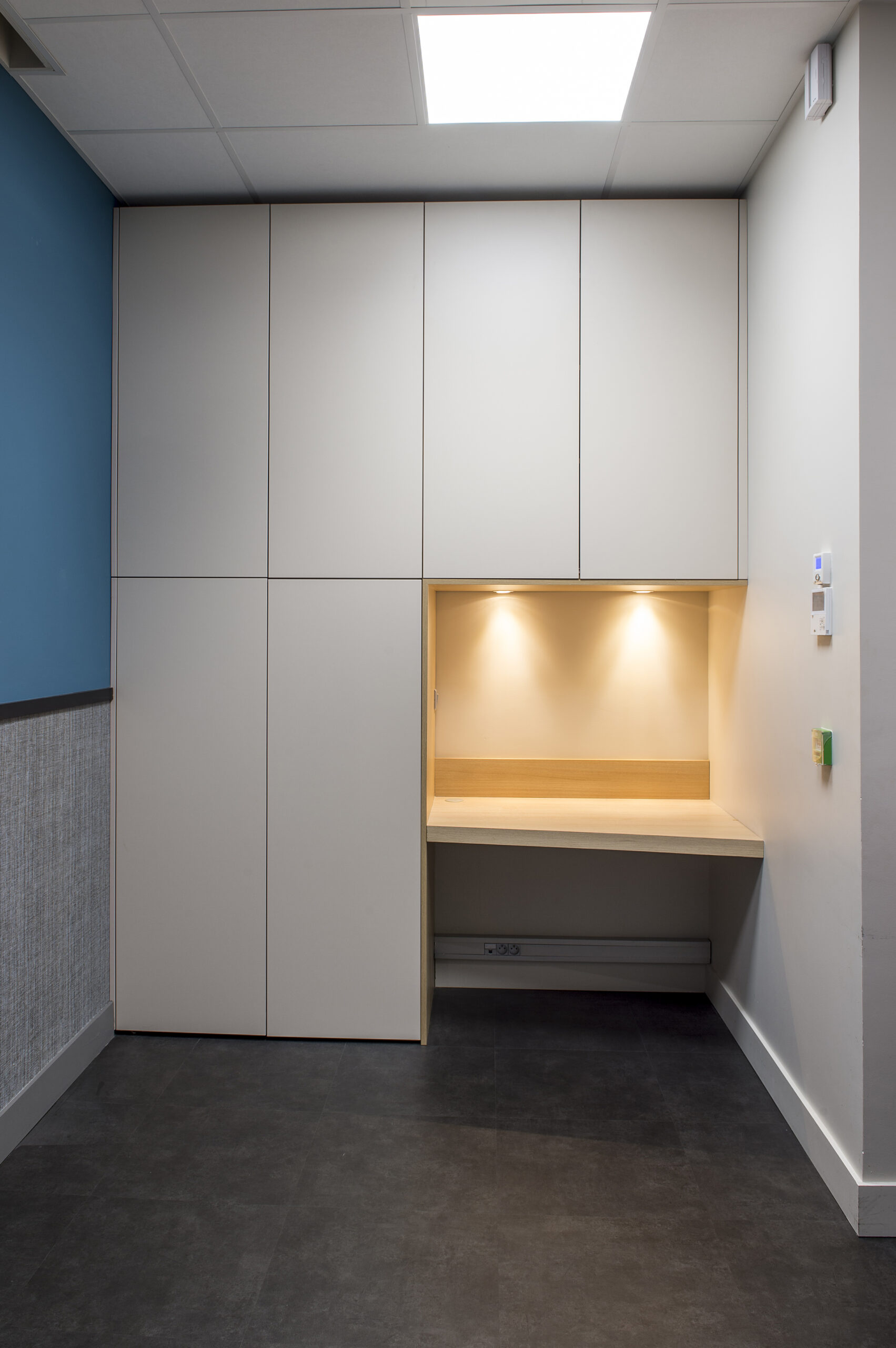 Habituellement pour une rénovation en profondeur, il est préférable que les occupants des lieux déménagent pendant la durée du chantier. Mais ici ce n’était pas possible, nous avons donc imaginé un phasage des travaux en plusieurs tranches, pour assurer l’exploitation du cabinet pendant les travaux. Cette contrainte a été d’autant plus importante que le programme des travaux comprenait la rénovation intégrale de l’ensemble de l’installation électrique ainsi que les réseaux informatiques et téléphoniques. Nous avons aussi rénové les menuiseries extérieures et installé une climatisation.