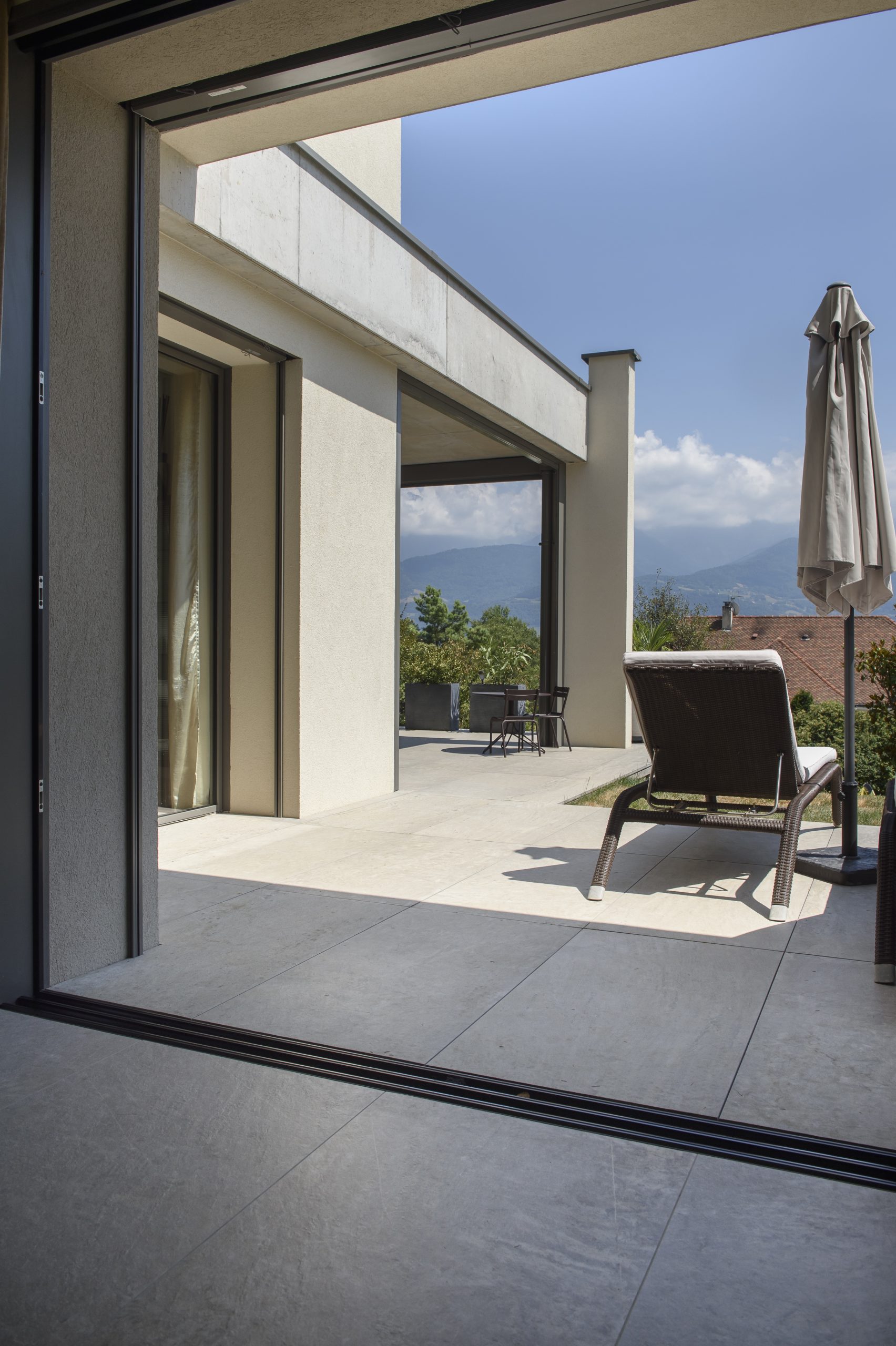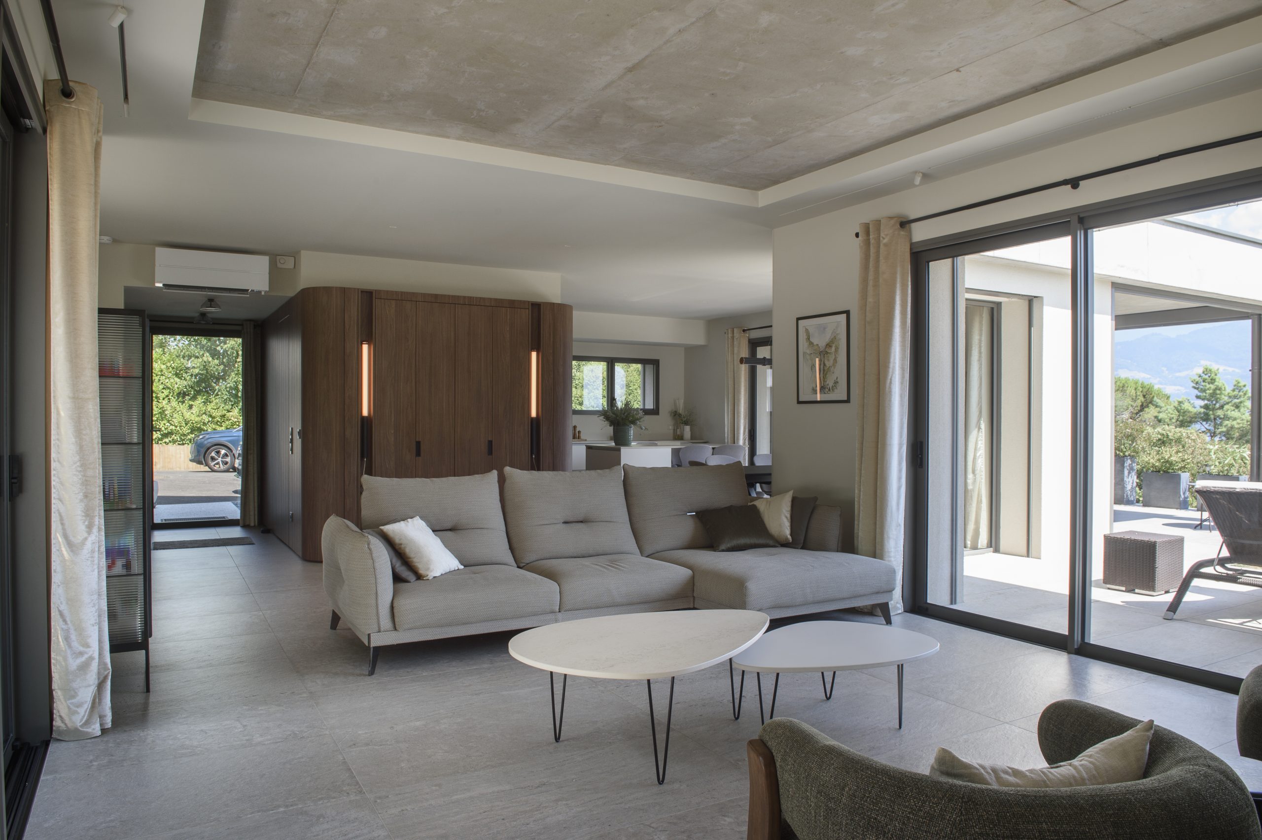 L’architecte Grenoblois Michel JANIK signe la conception de cette villa ouverte sur la nature de la vallée du Gresivaudan. Nous lui avons apporté quelques touches finales à l’intérieur.